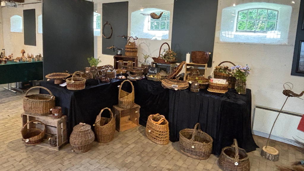 Aakjærselskabet - Jenle får også besøg af nogle dygtige pileflettere, som laver de flotteste ting (kurve, brødbakker, kurve til strikketøj m.m.). De bruger bl.a. også bark, som en del af kunsten.